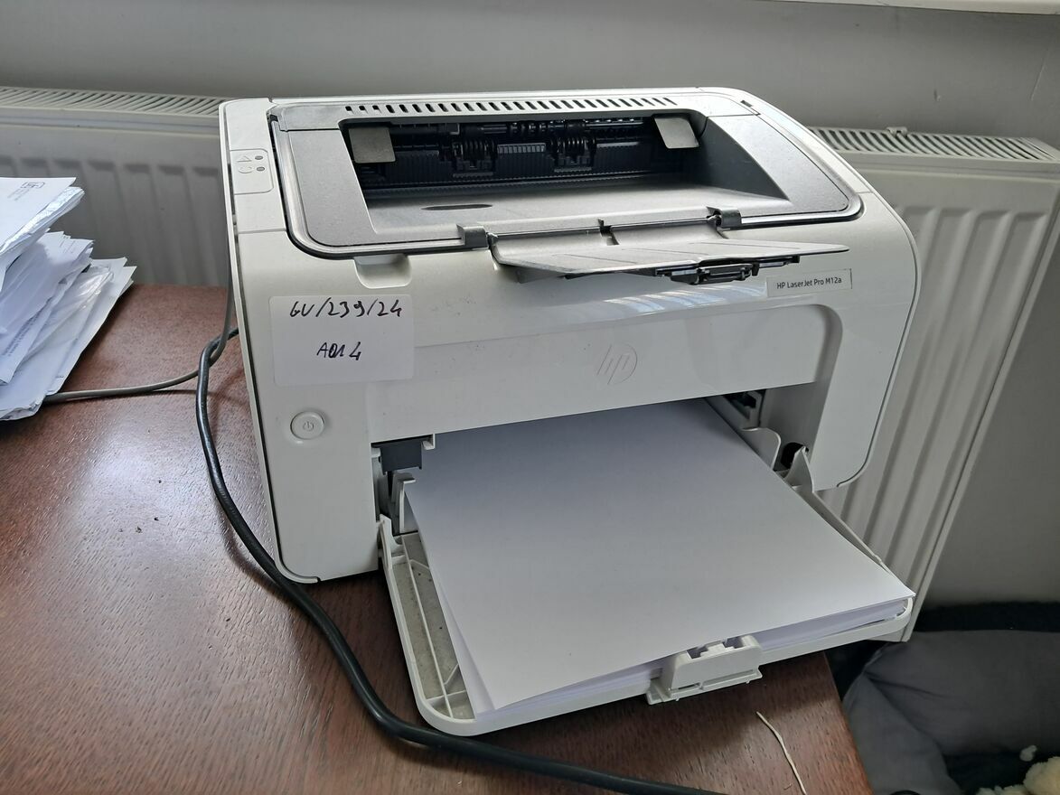1. Drukarka HP Laser Jet PRO M12a, za cenę sprzedaży nie niższą niż 50% wartości rynkowej oszacowania, tj. kwotę 150,00 zł (słownie: sto pięćdziesiąt złotych 00/100)